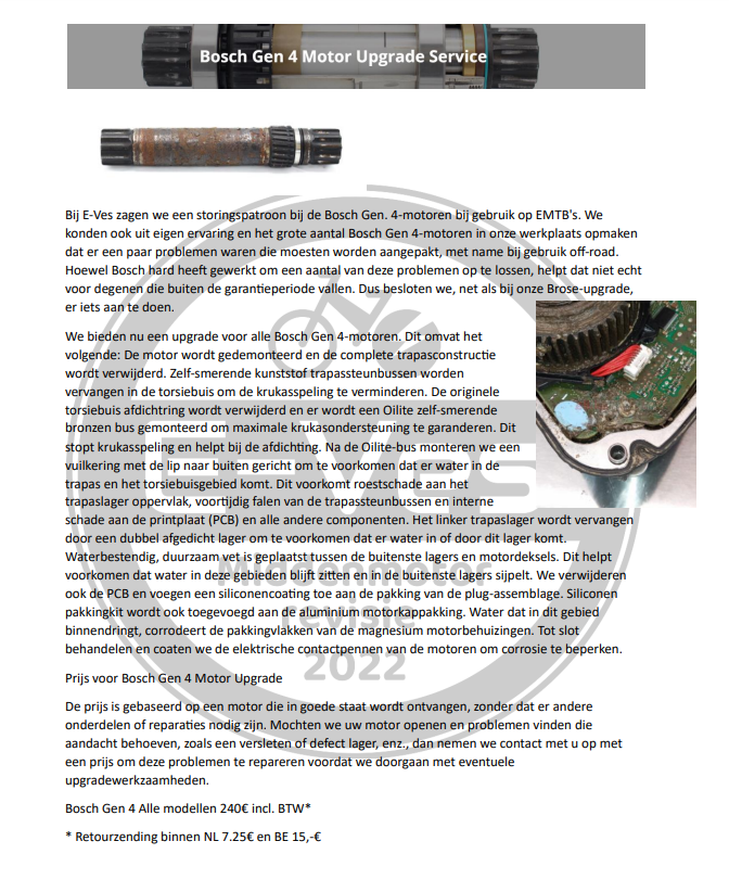 Prijs voor Bosch Gen 4 Motor Upgrade